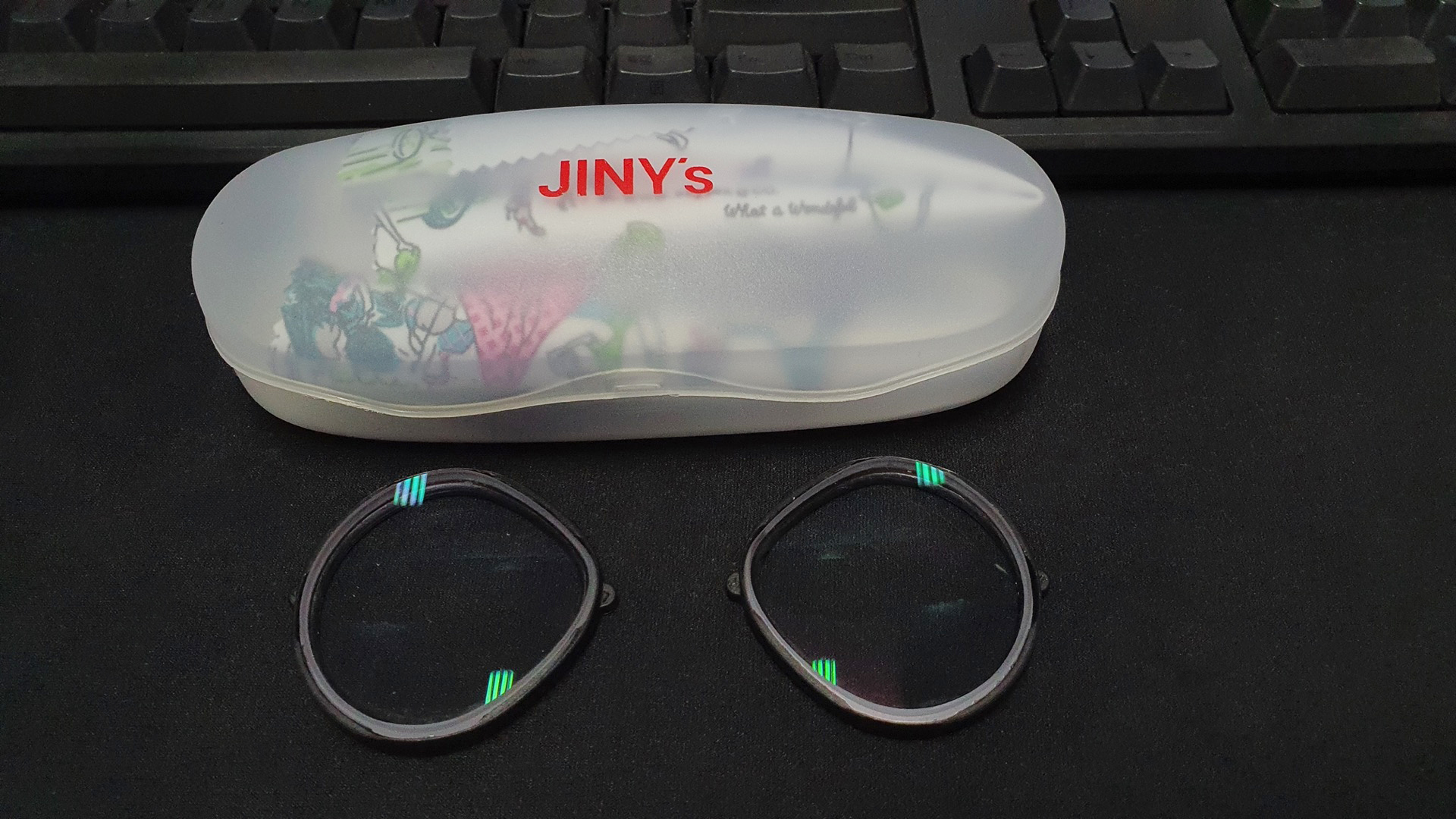 - 안경 렌즈가 장착된 상태의 1 Set (L, R) -> 블루라이트 렌즈라는데 그냥 가이드용 렌즈로 사용하면 됩니다.