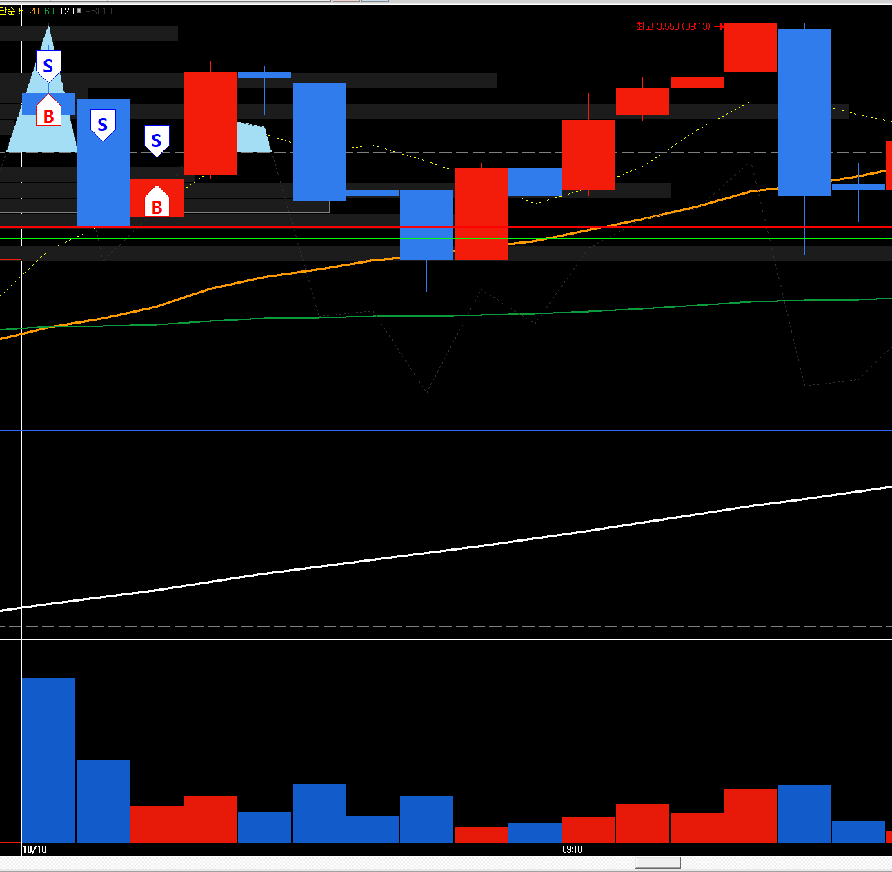 높은 시초가였지만, 슈팅 확률이 높다라고 판단되어 시초가에 진입하고 올라가면 그냥 가고