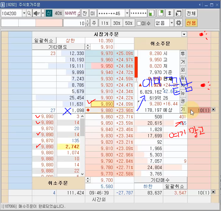 더군다나 매수 창에 허매수 물량이 들어왔다 나간 상태였고