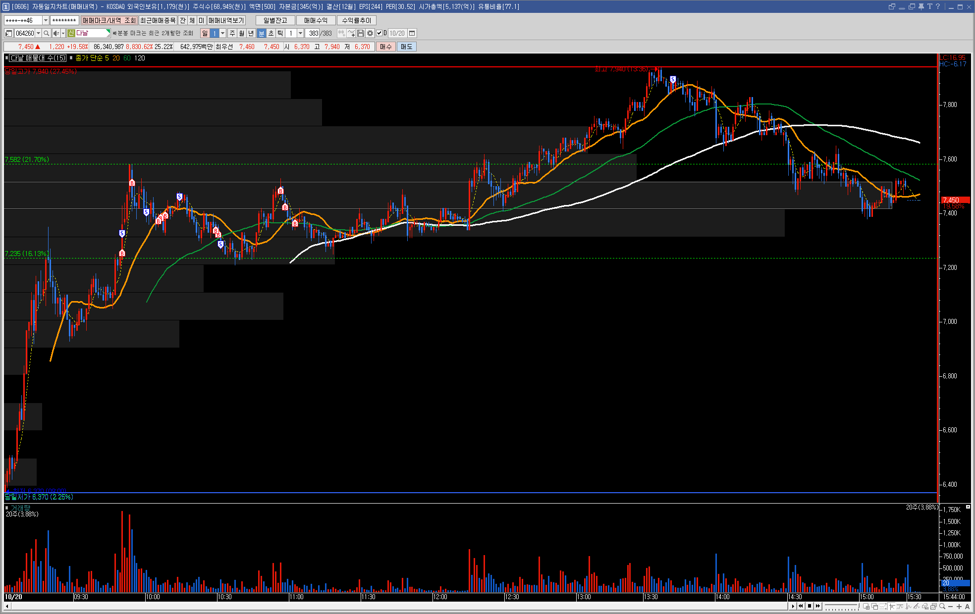 그러다가 매도세가 강해지기 시작하여 분할 매도하여 수익을 확정 지었습니다.