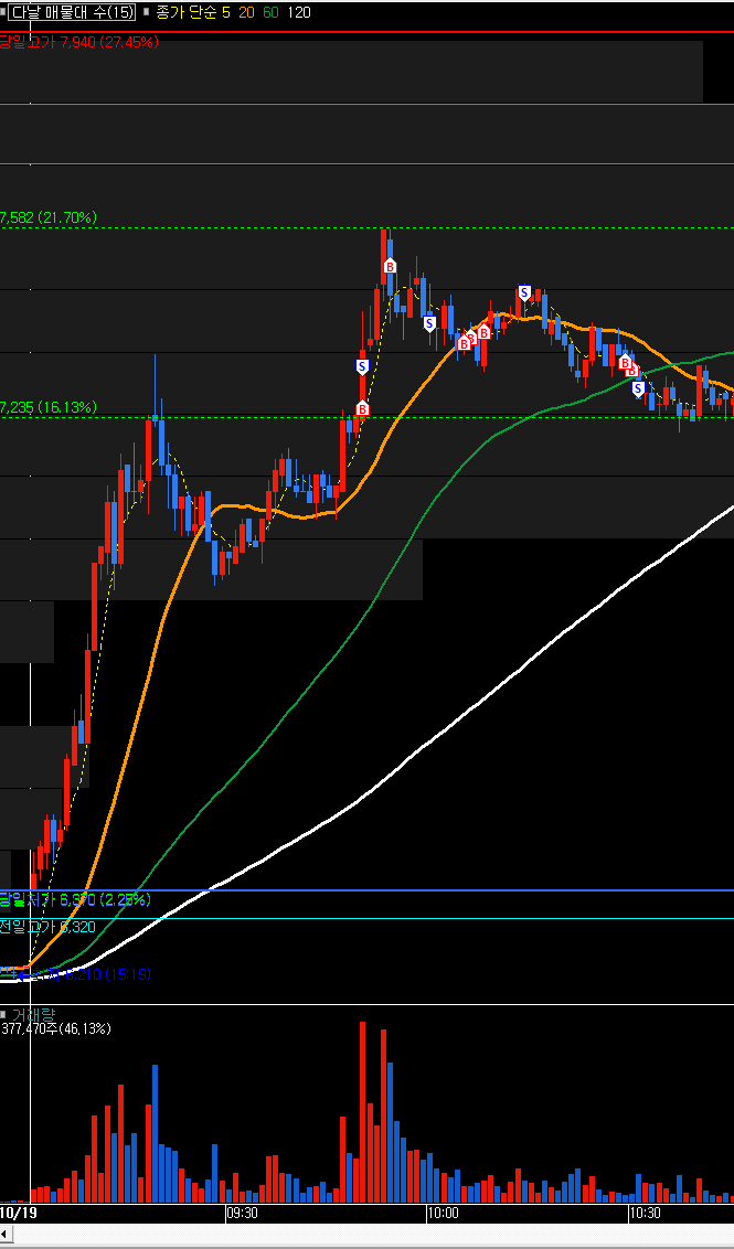 그 모습을 보니 매수세가 엄청 강하게 느껴졌고, 이대로라면 상한가 도전도 해볼 만하겠다! 생각됐습니다.