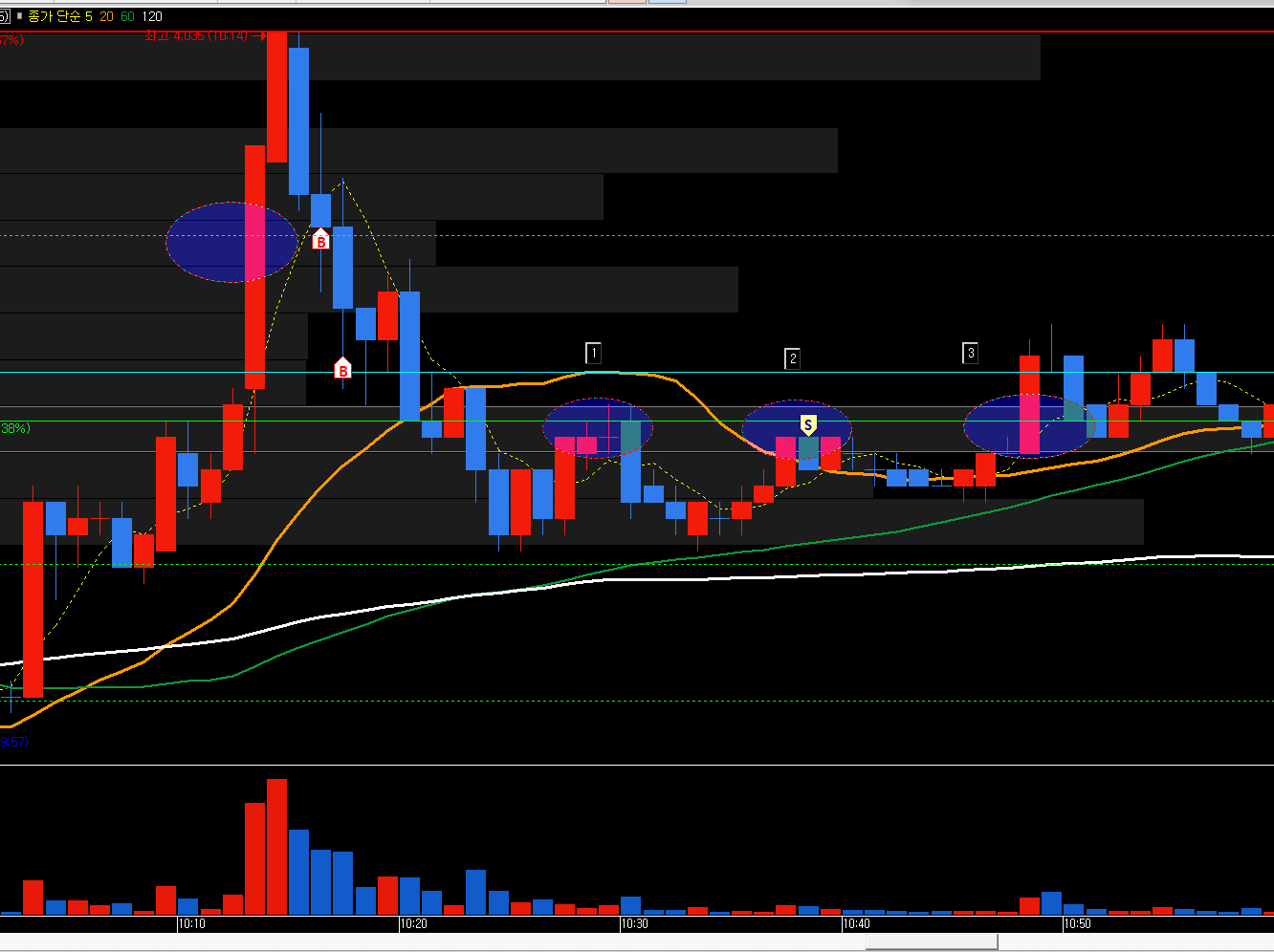 슈팅 이후에 눌림목 매매로 접근하였습니다.
