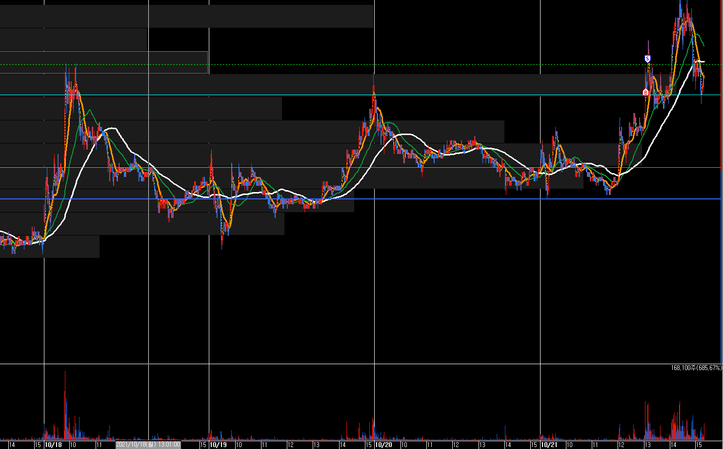이후 최고가를 갱신하고 매도세가 강해져서 나머지 전량 매도 처리하여 수익을 확정 지었습니다.