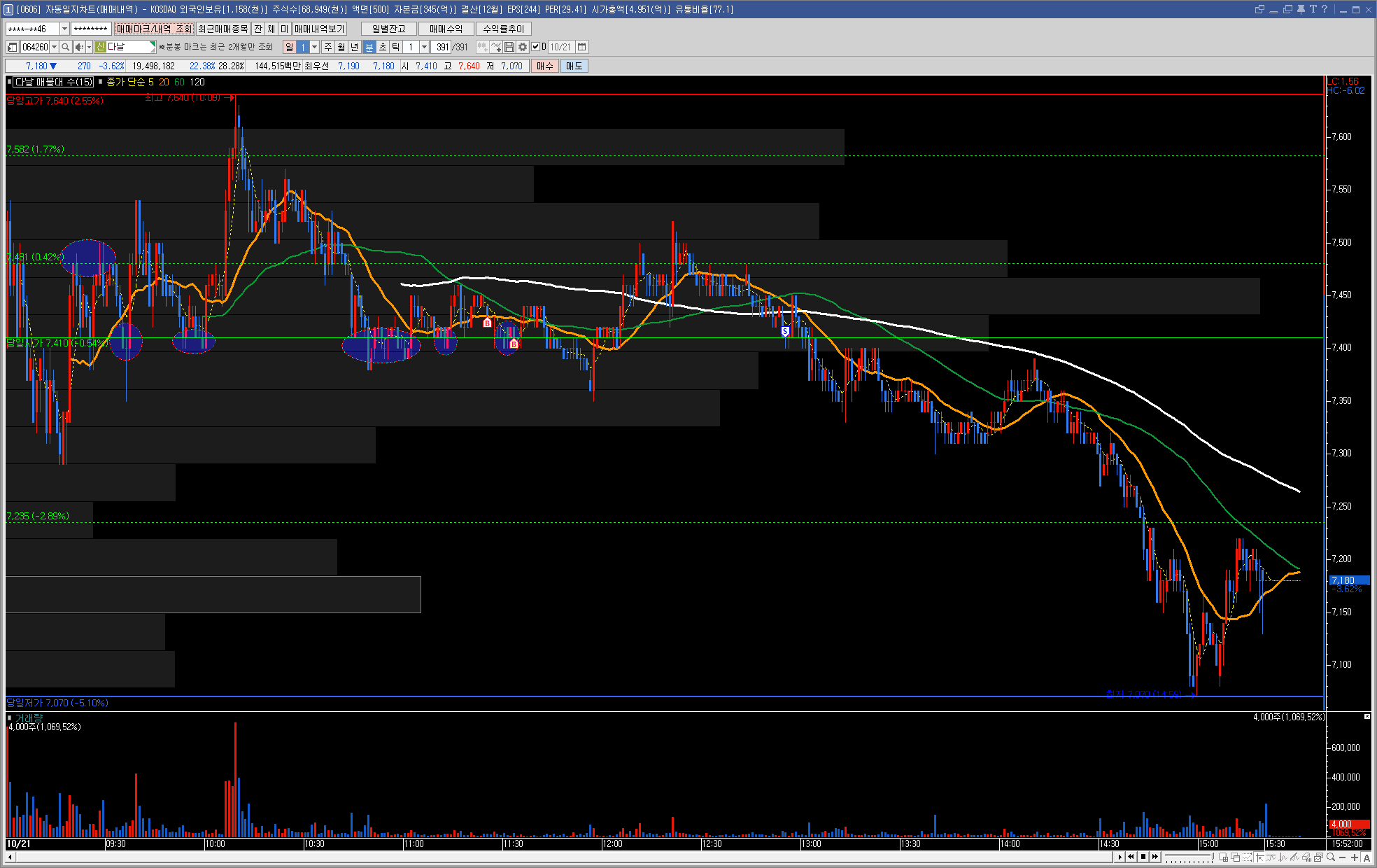 전일 고가가 3,930원이었고 이 부분을 지지점으로 예상하여 매수했습니다.