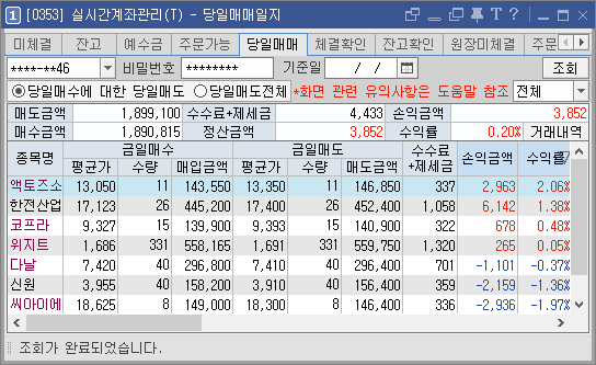 전량 매도 처리하여 수익을 확정하고 금일 매매를 양전하여 매매를 종료하게 되었습니다.