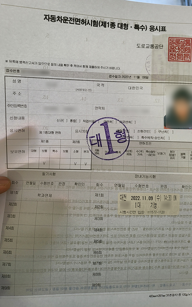 아무튼.. 1종대형 첫 번째 도전은 생각보다 간단(?)하게 마무리되었습니다.