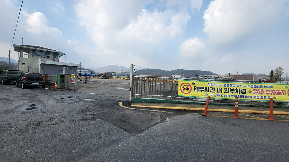차량이 너무 왼쪽으로 붙어있는 상태여서 살짝 오른쪽으로 이동하면서 왼쪽과 간격을 대략 50cm 정도 벌려주고