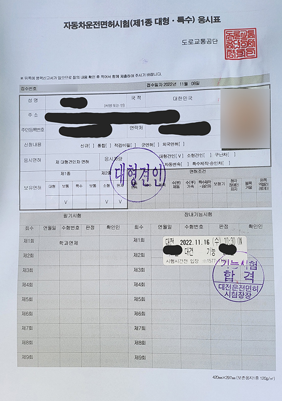 간만에 합격을 받으니 너무 기쁘더군요ㅠㅠ (구난, 대형 기타 등 불합격 투성이라....)