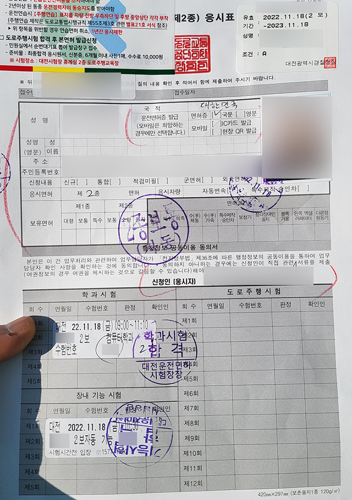 청주에서 면허 발급을 해주고 교부 등록을 안 해줘서 전산에는 아직 2종보통(수동) 합격 상태로만 유지되고 있다는 것입니다.