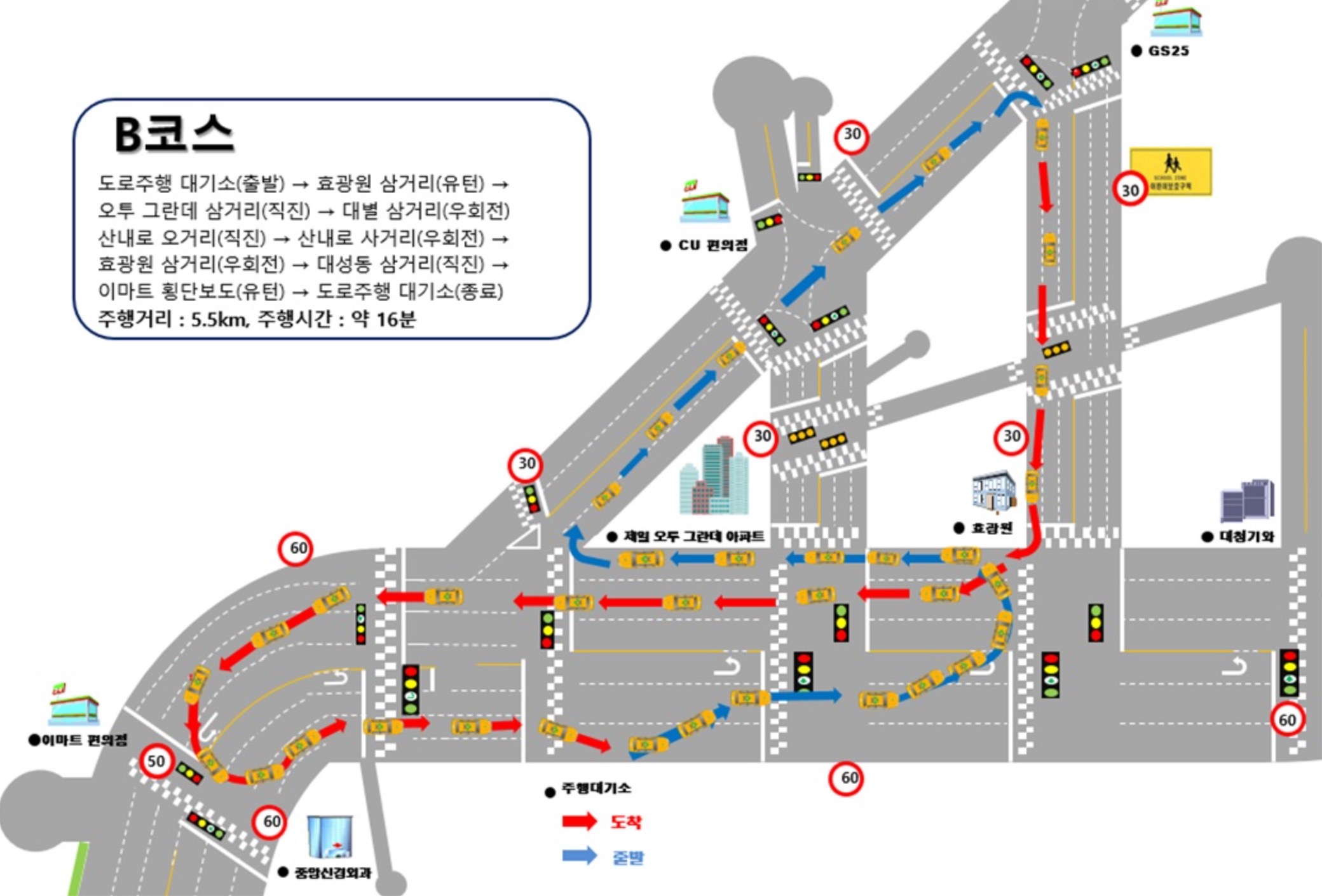 [대전면허] 시험장 정보>기능·도로주행 코스도 | 도로교통공단