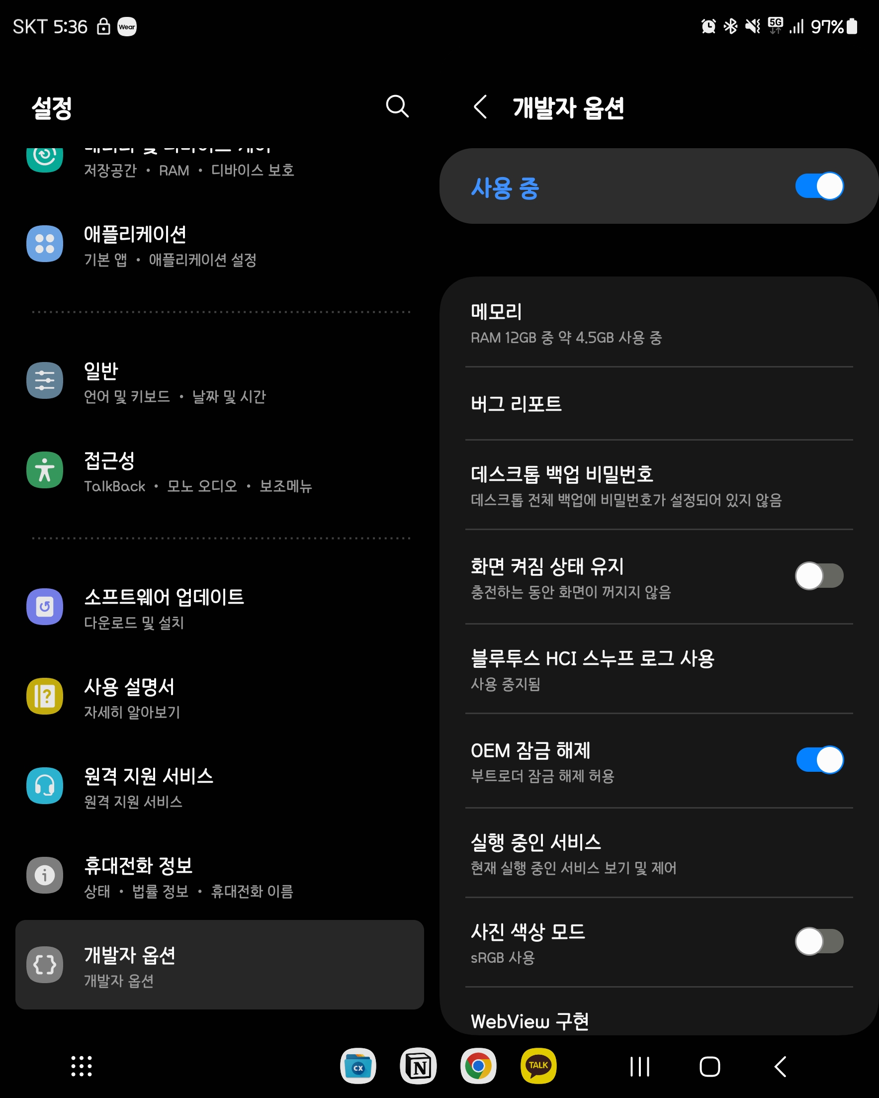 7) 개발자 모드를 활성화시키고 OEM 잠금 해제를 활성화시켜줍니다.